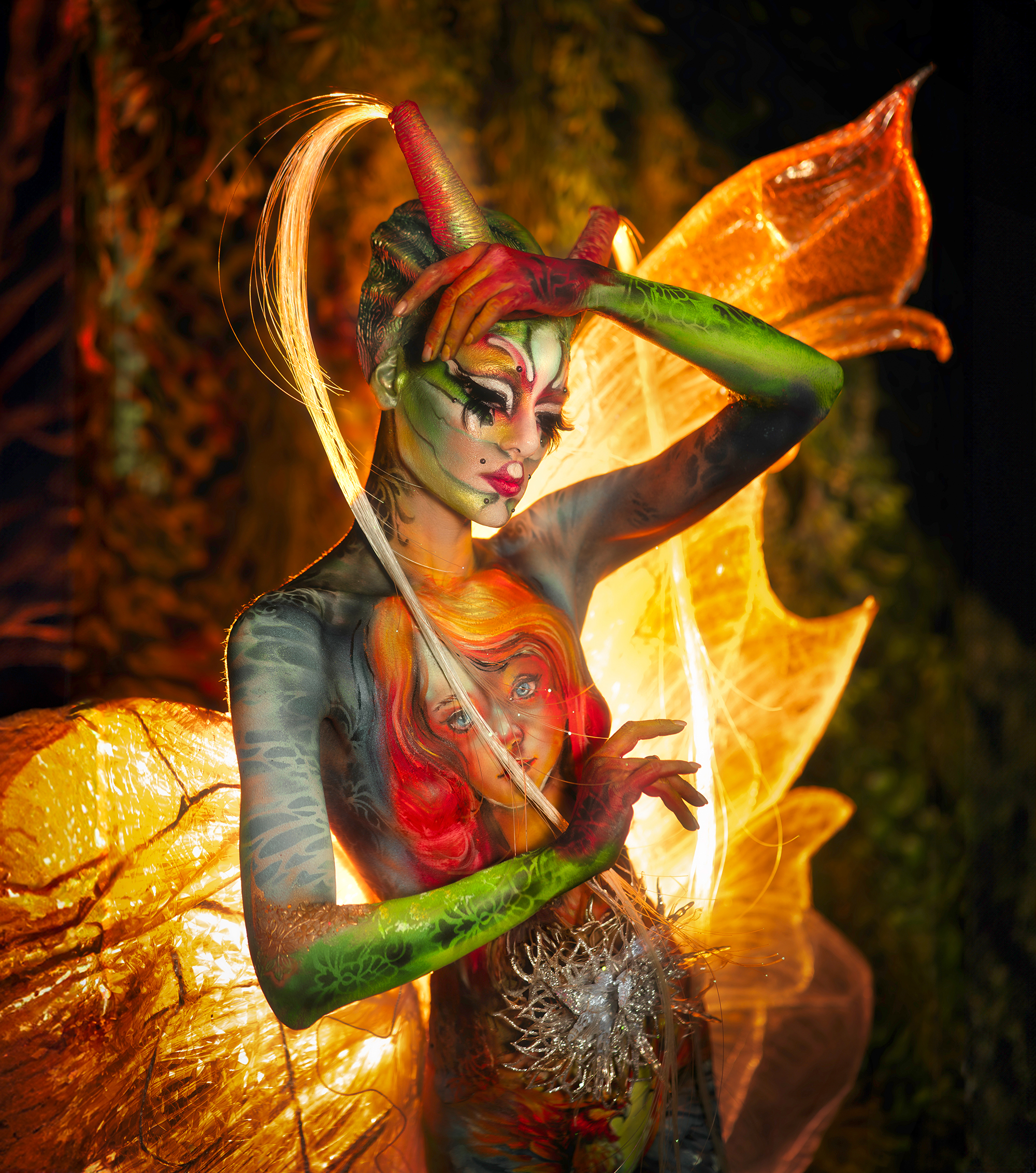 Julie Böhm, a versatile artist with an international reputation, has made a name for herself in the fields of body painting, make-up, short film and costume design. Julie, who lives in Lutherstadt Wittenberg, has been body painting since 2009. Her artistic journey branched out into painting, multimedia and film during her studies – and since then she has redefined the world of body make-up.